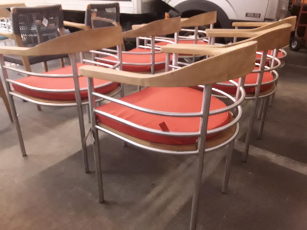 SERIE DE 6 FAUTEUILS DE TERRASSE INOX ET BOIS